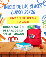 Acogida del alumnado de todas las enseñanzas: el lunes 8 de septiembre a partir de las 10:20 horas (consultar archivo adjunto)